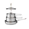 Das Kochset von Primus aus robustem 18/8-Edelstahl, das für den jahrelangen harten Einsatz ausgelegt ist. Das stapelbare Set lässt sich platzsparend in der mitgelieferten Tasche verstauen.